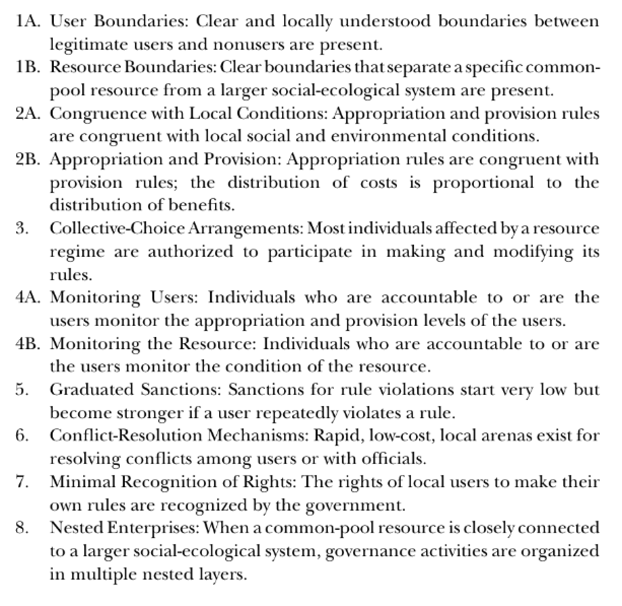 Eight principles of well functioning common goods by Elinor Ostrom – from her Nobel Prize speech, 2009-12-08.