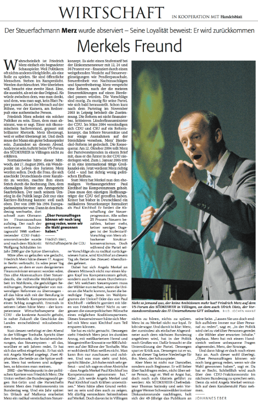 Vor knapp 20 Jahren schrieb ich diesen Satz. Genauer gesagt am 17. August 2005. Es war der Tag, an dem Angela Merkel Paul Kirchhoff als designierten Finanzminister in ihr Kompetenzteam holte. Zufällig sprach Merz am selben Abend in Villingen-Schwenningen und damit im Verbreitungsgebiet der Regionalzeitung SÜDKURIER, für die ich damals als Wirtschaftsredakteur arbeitete. Ebenso zufällig bin ich gestern Abend über diesen Text gestolpert. Ein Text, der zeigt, dass Friedrich Merz Ausdauer und Motivation hat. Und ein prophetischer Text. Aber: Keine Angst, ich werde von nun an nicht regelmäßig meine alten Texte hier posten. Alleine schon deswegen, weil ich die Texte überflogen habe (liegen verschlüsselt auf meinem USB-Stick) und feststellen musste: Es sind nur wenig prophetische darunter. :-)